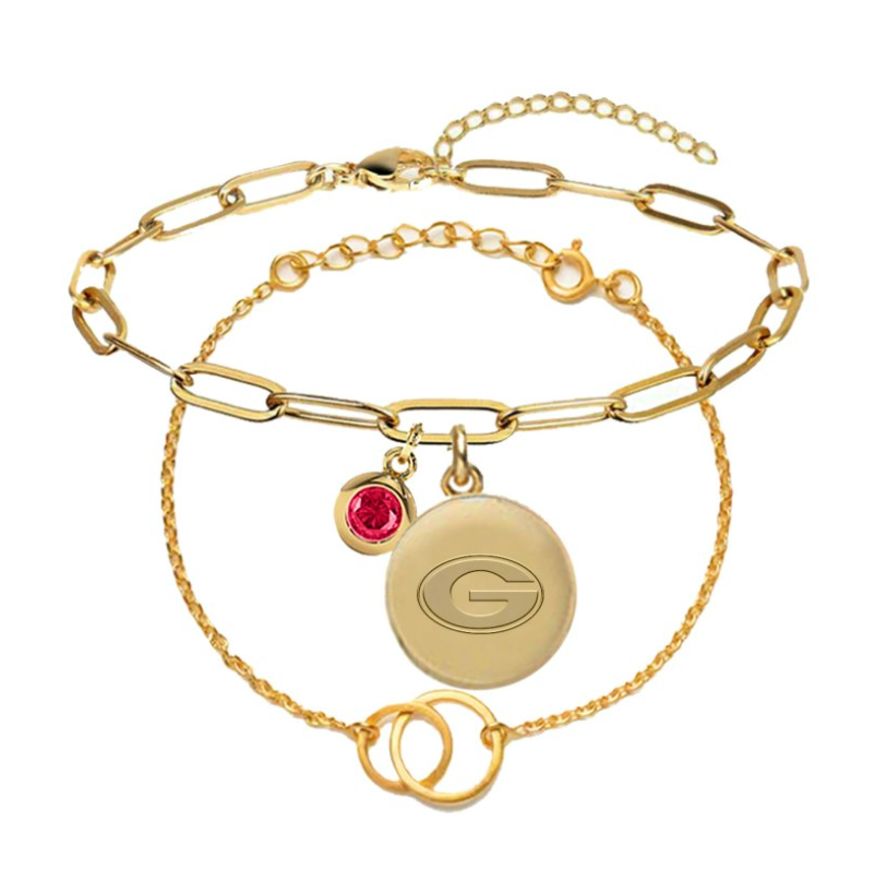 The Jacaranda Bracelet is a stylish two-piece set designed to showcase your school spirit with a fashionable twist. One bracelet features a sleek pendant with your school’s logo with a gemstone in your team’s signature color. Perfect for stacking together or wearing separately, this versatile set adds the right mix of pride and polish to any outfit—whether you’re heading to class, game day, or a night out.